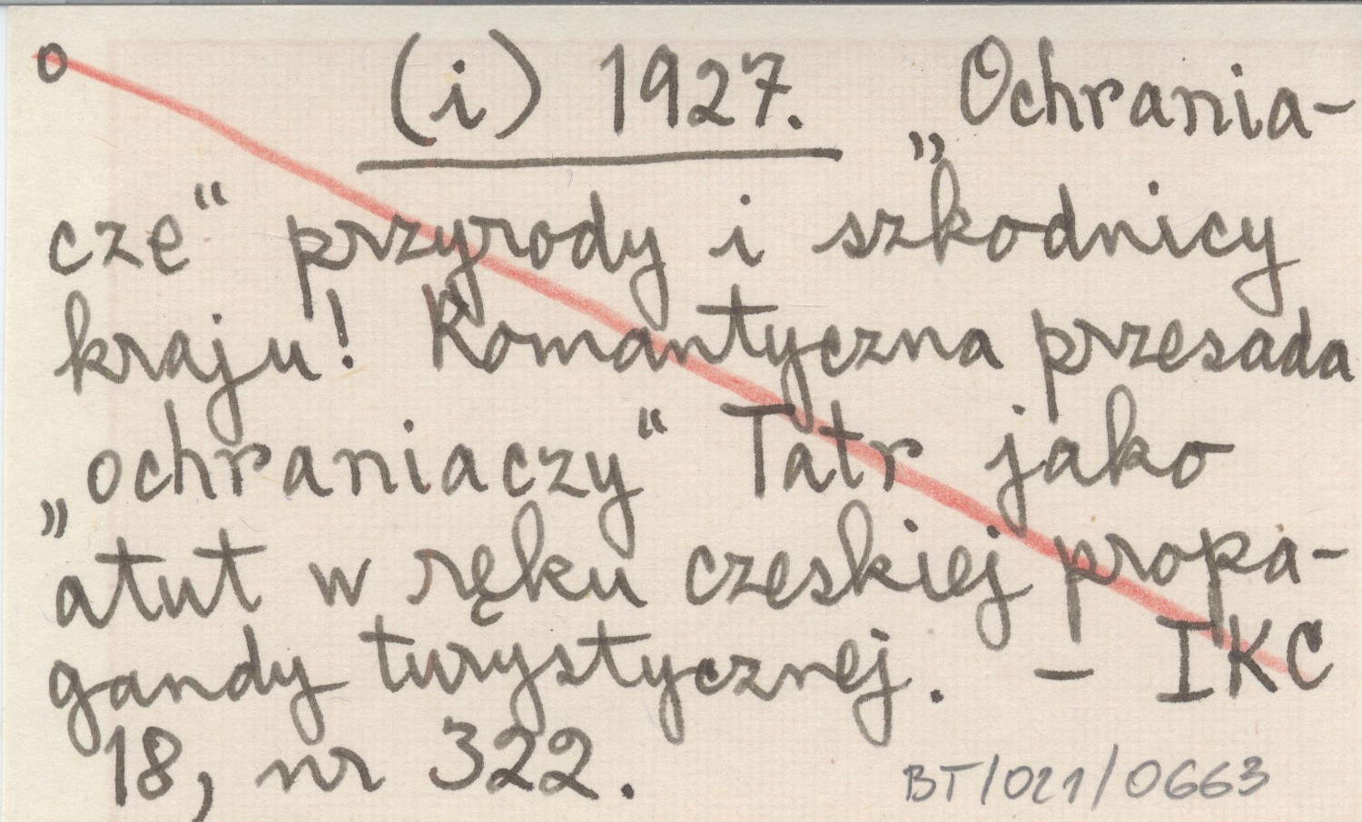 (i) 1927 "Ochraniacze" przyrody i szkodnicy kraju! Romantyczna przesada "ochraniaczy" Tatr jako atut w ręku czeskiej propagandy turystycznej.