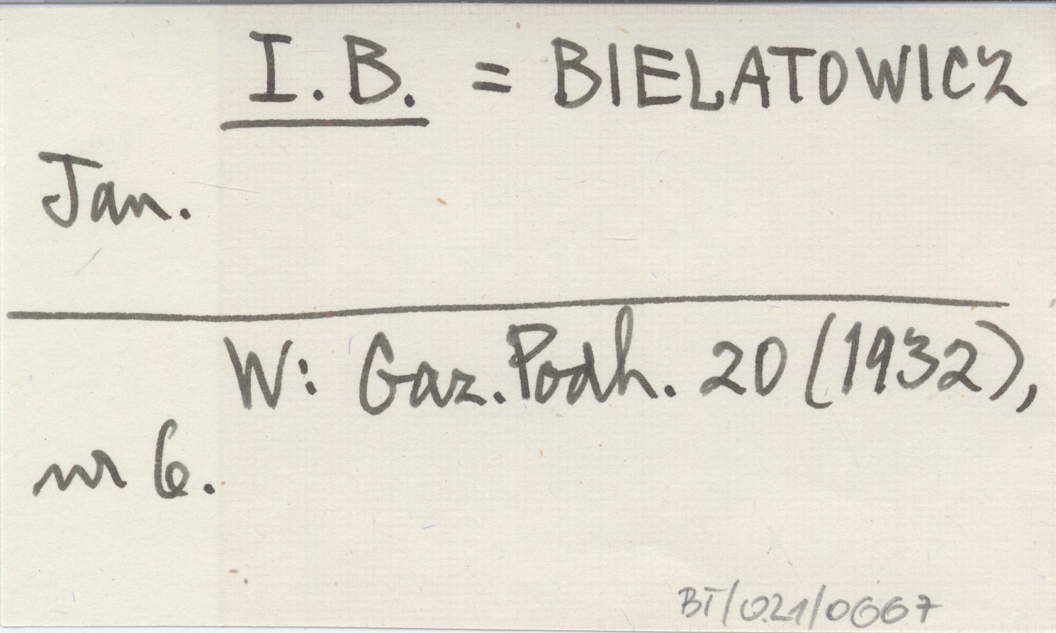 I. B. BIELATOWICZ Jan Gazeta Podhalańska 20 (1932), nr 6.