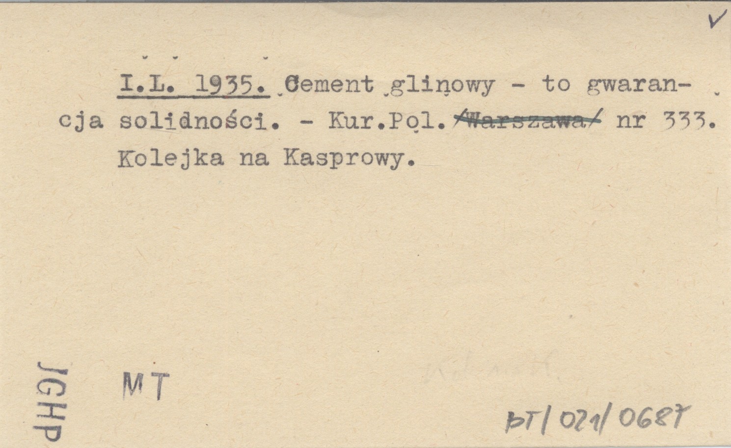 I. L. 1935 Cement glinowy - to gwarancja solidności.