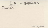 I. N. NAHÁLKA Imrich