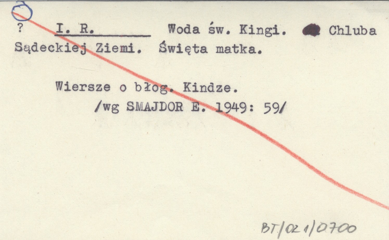 , Wiersze o błog. Kindze (wg SMAJDOR E. 1949: 59).