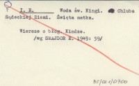 I. R. Woda św. Kingi. Chluba Sądeckiej Ziemi. Święta matka.