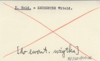 I. Told. ZECHENTER Witold [Do ewentualnego użytku].