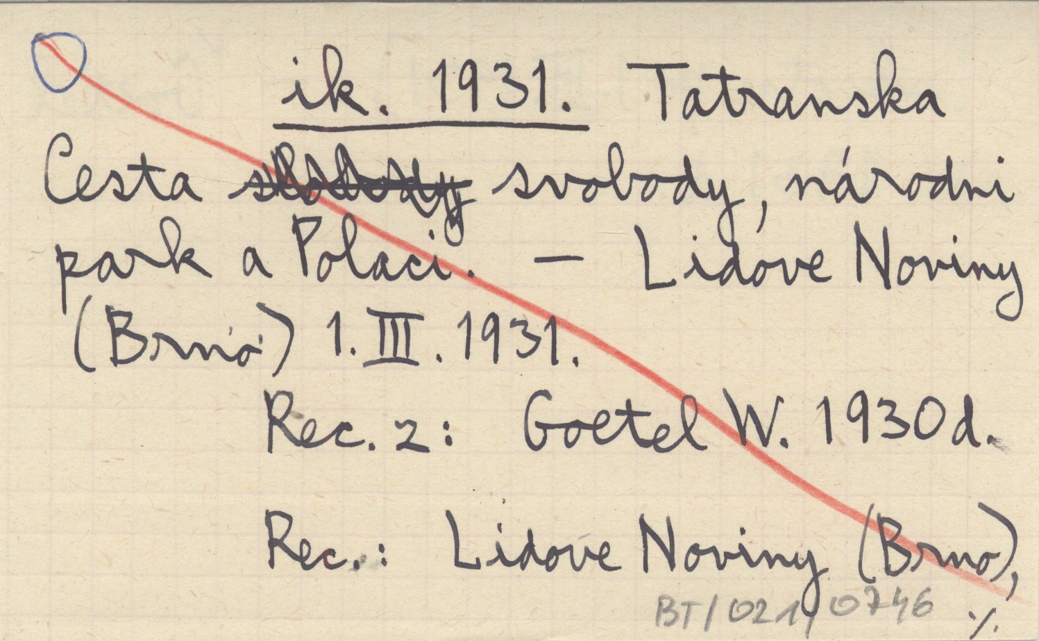 Lidove Noviny (Brno) , 1.III.1931. Rec. z: Goetel W. 1930 d. REC: Lidove Noviny (Brno), [wkrótce po 1.III.1931]. Goetel W. 1931 d.