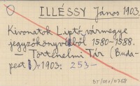 ILLÉSSY János 1903 Kivonatok Liptóvármegye jegyzőkönyvéből 1580-1588.