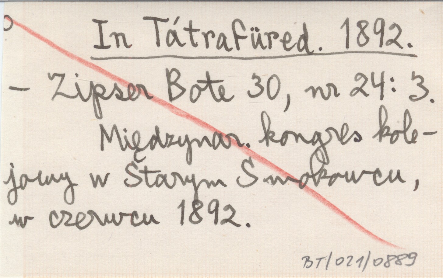 Zipser Bote, 30, nr 24: 3. Międzynarodowy kongres kolejowy w Starym Smokowcu, w czerwcu 1892.