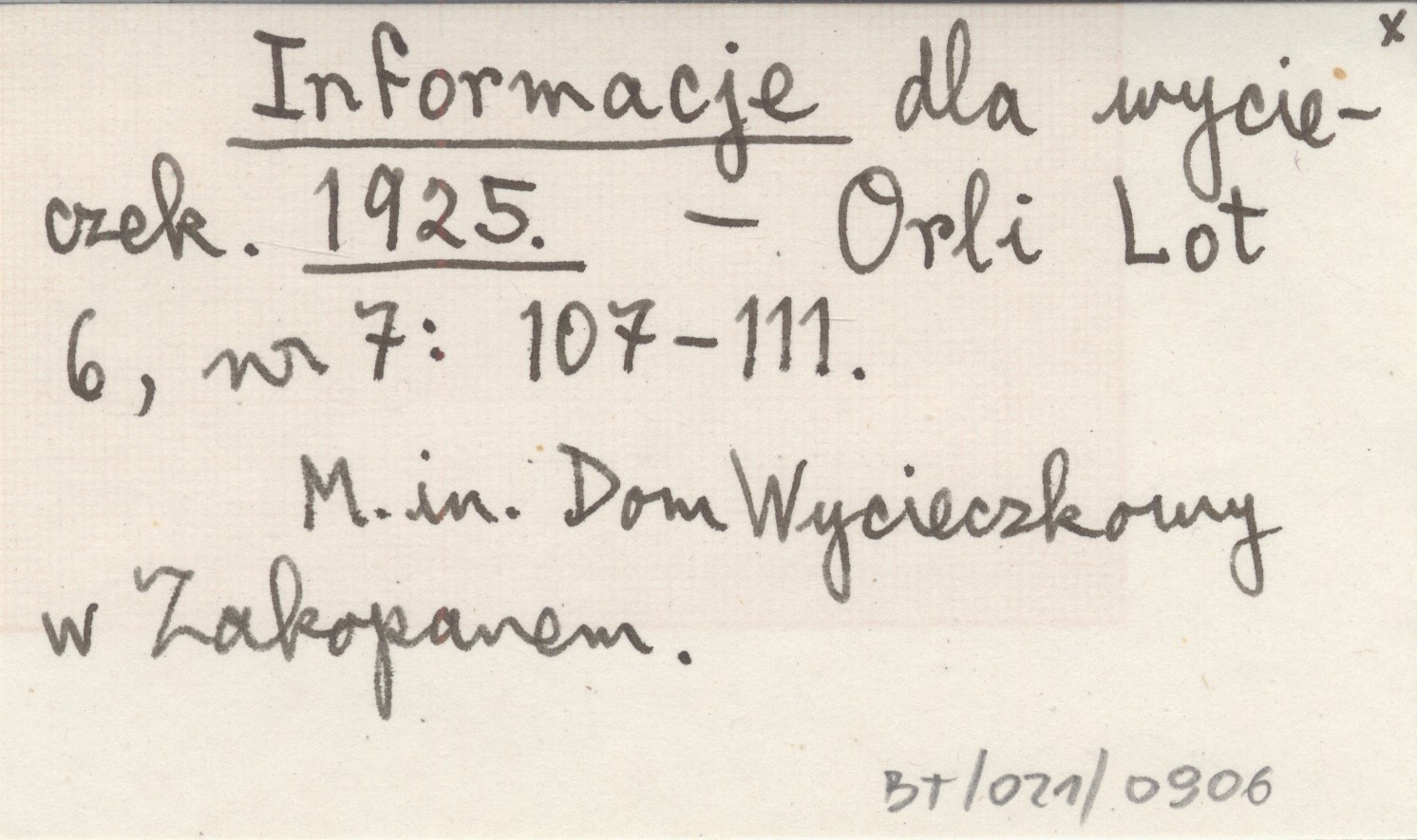 Orli Lot, 6, nr 7: 107-111. M. in. Dom Wycieczkowy w Zakopanem.