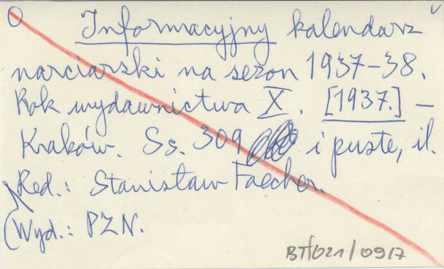 RED: FAECHER, Stanisław. ; Informacyjny kalendarz narciarski na sezon 1937-38. Rok wydawnictwa X. [1937]