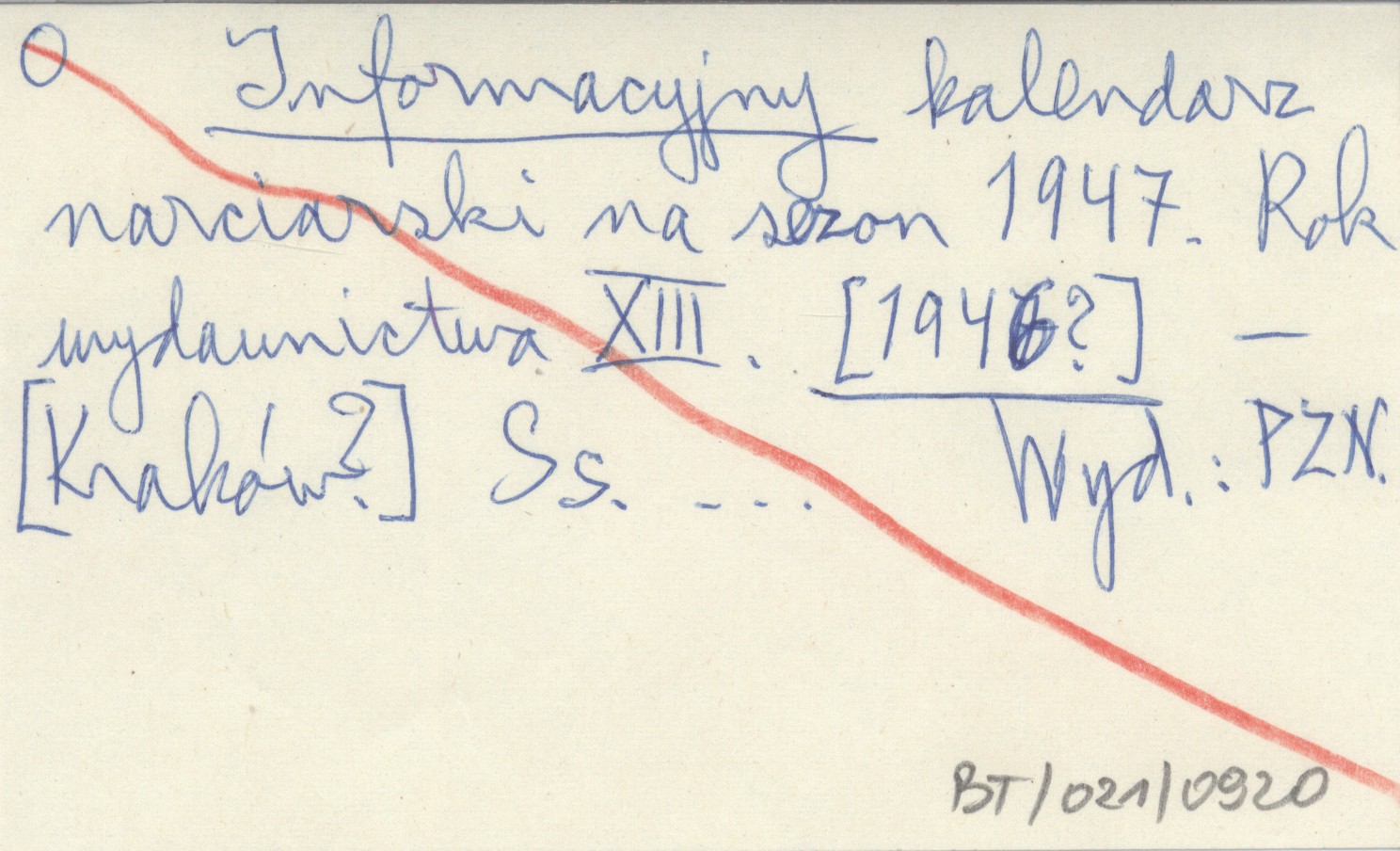 Informacyjny kalendarz narciarski na sezon 1947. Rok wydawnictwa XIII. [1946?]