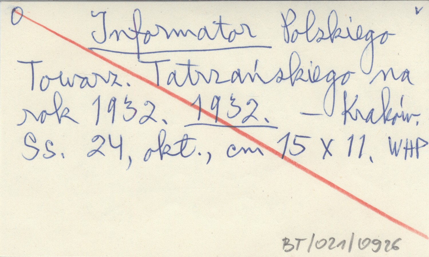 Informator Polskiego Towarzystwa Tatrzańskiego na rok 1932. 1932