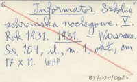 Informator. Szkolne schroniska noclegowe. V. Rok 1931. 1931