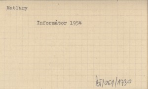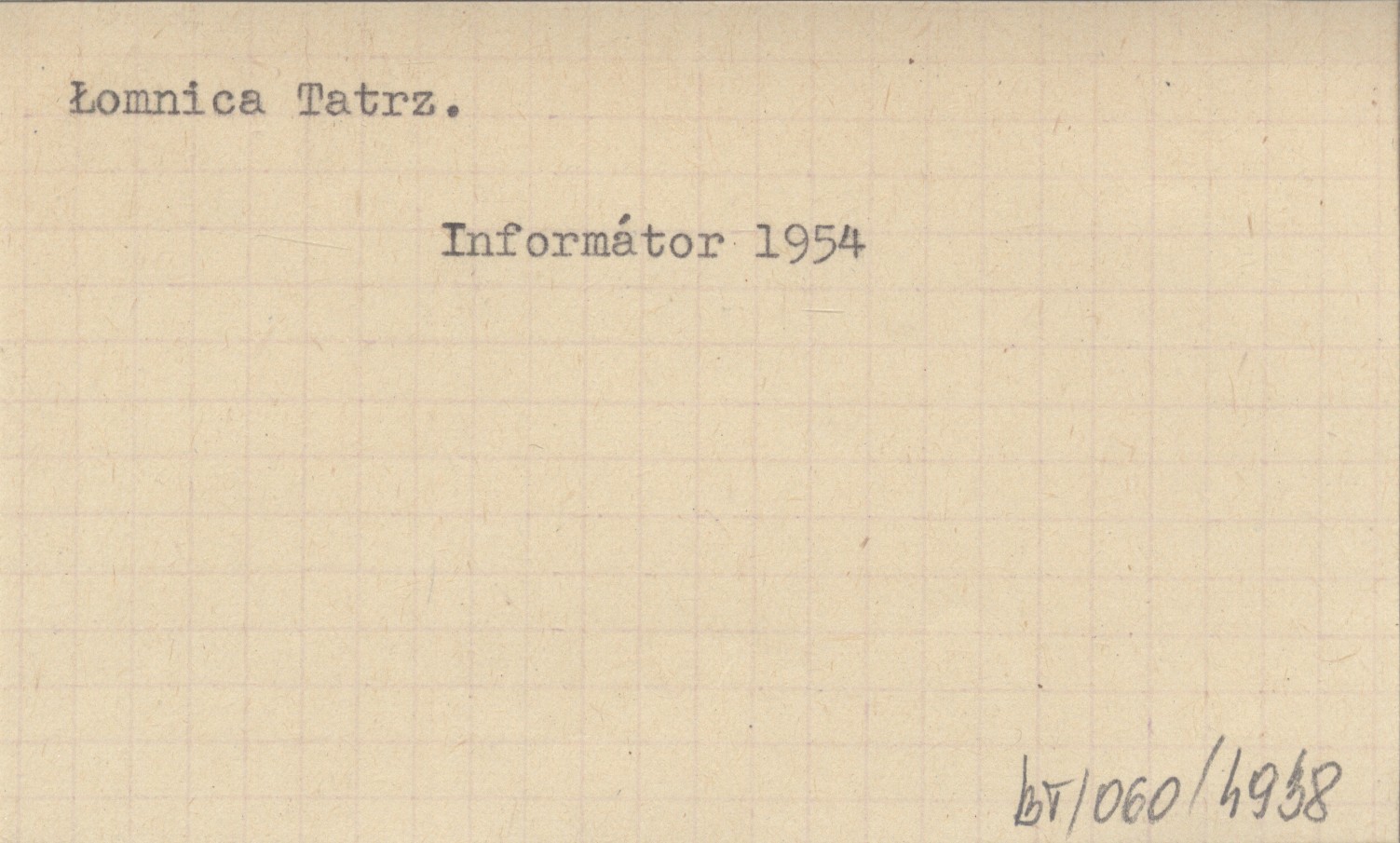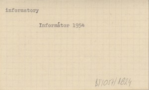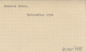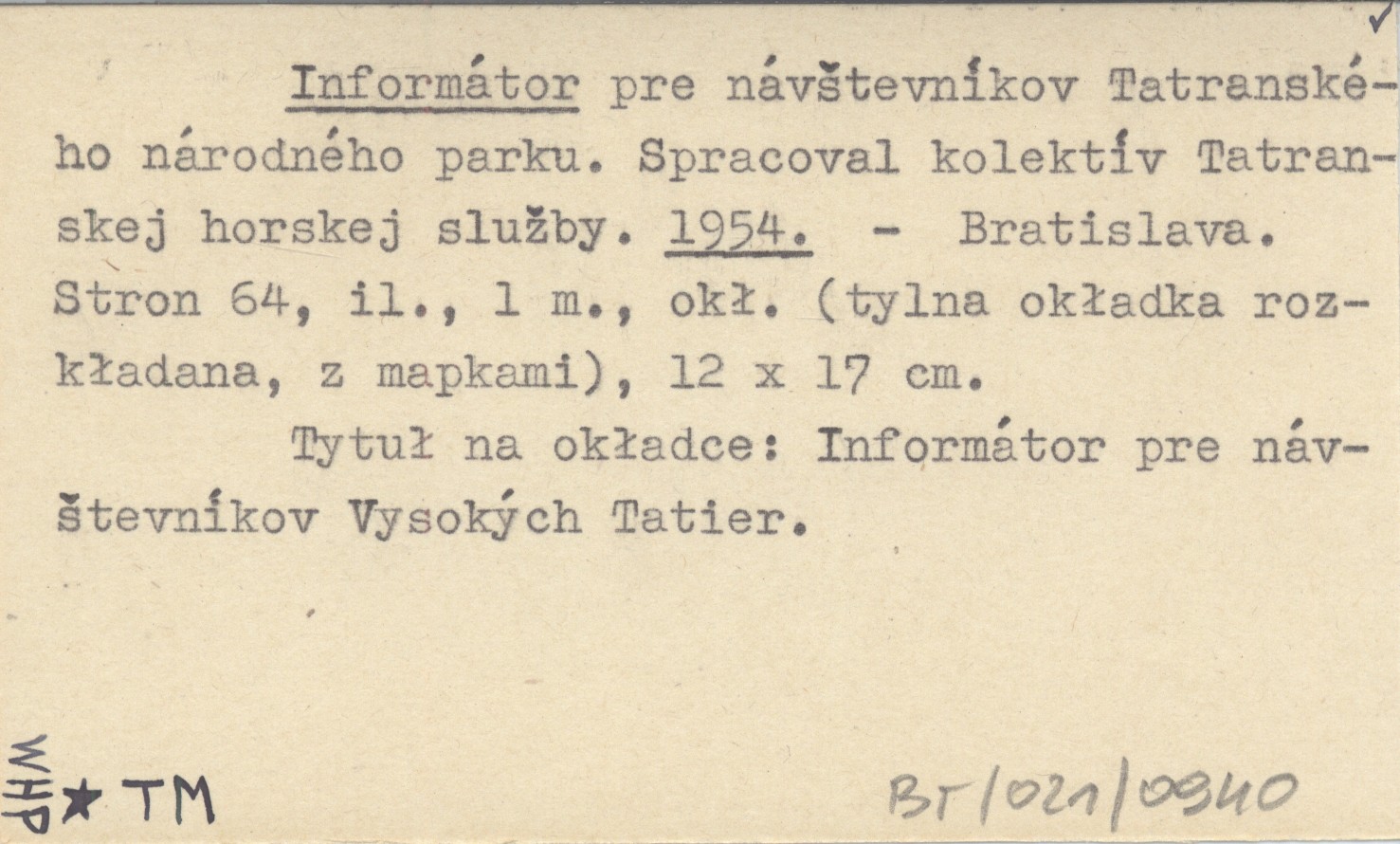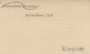 Informátor pre návątevníkov Tatranského národného parku. Spracoval kolektív Tatranskej horskej sluľby. 1954