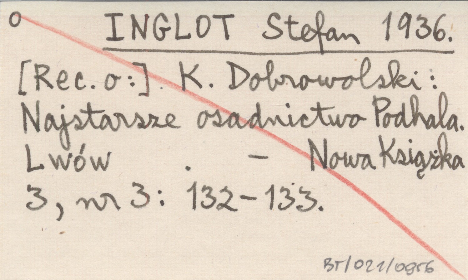 INGLOT Stefan 1936 K. Dobrowolski: Najstarsze osadnictwo Podhala. Lwów.