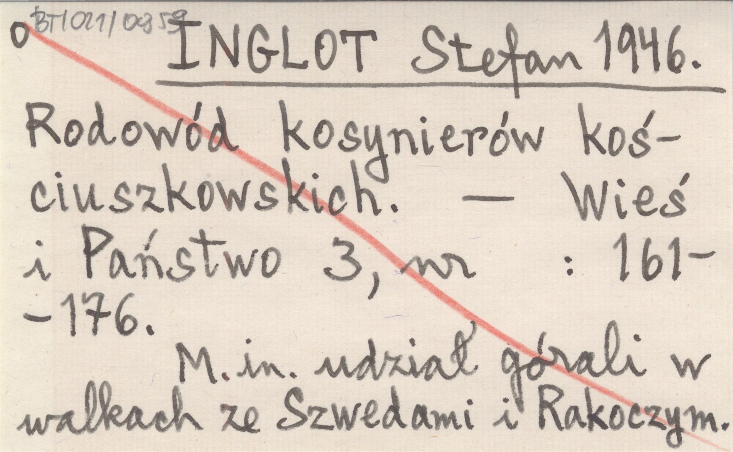 INGLOT Stefan 1946 Rodowód kosynierów kościuszkowskich.