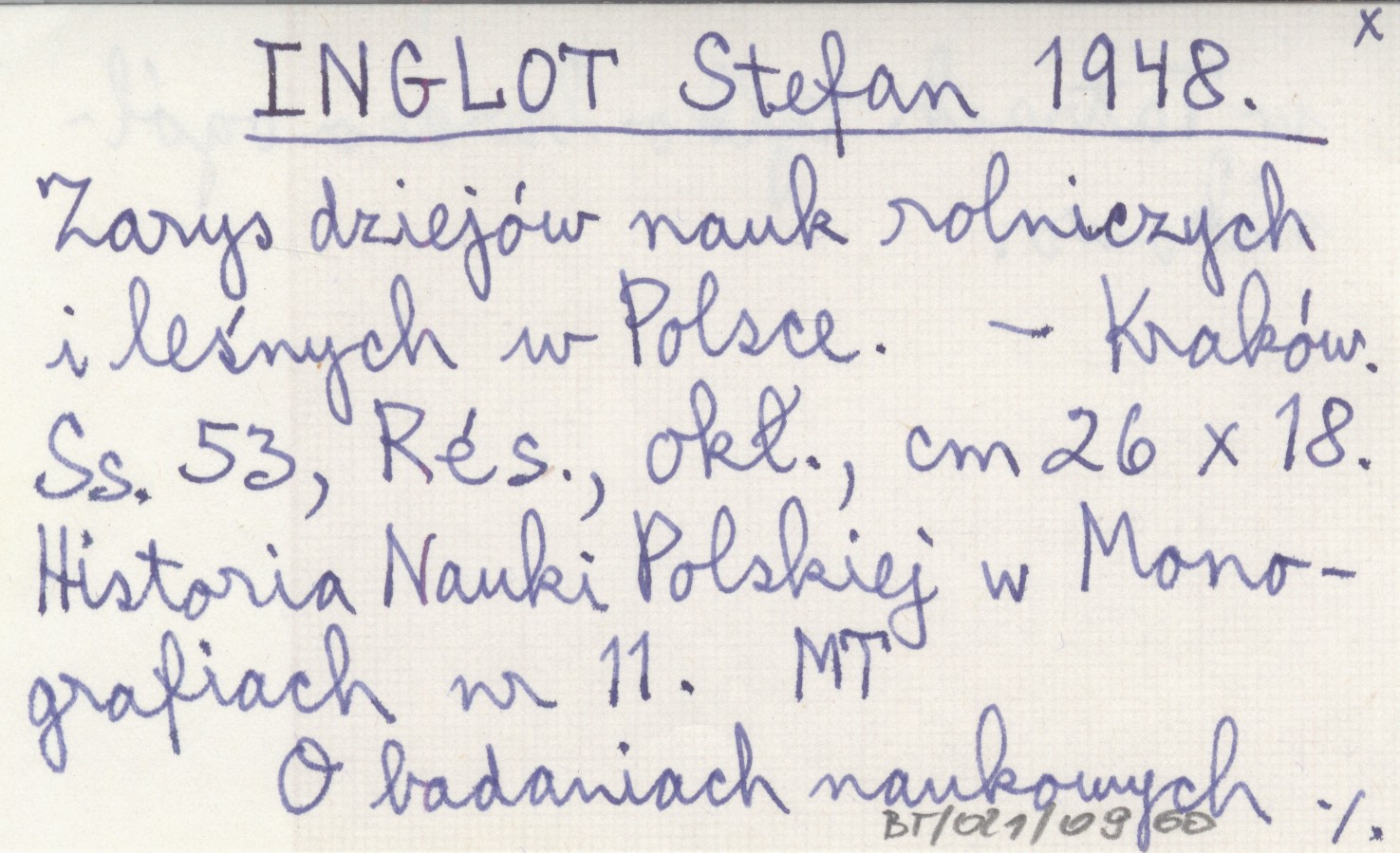 INGLOT Stefan 1948 Zarys dziejów nauk rolniczych i leśnych w Polsce.