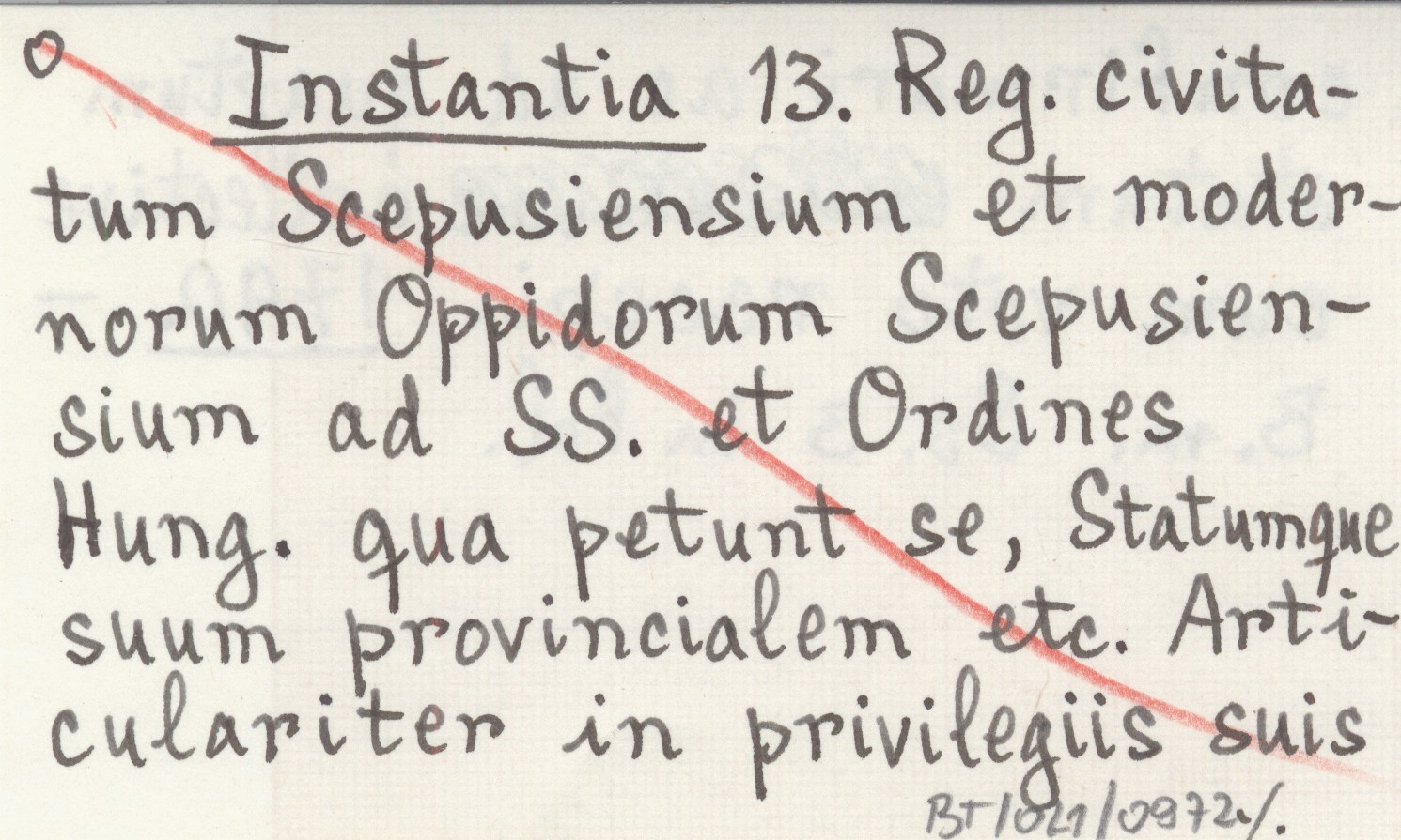 Instantia 13. Reg. civitatum Scepusiensium et modernorum Oppidorum Scepusiensium ad SS. et Ordines Hung. qua petunt se, Statumque suum provincialem etc. Articulariter in privilegiis suis confirmari ac ad quartum statum collective cum voto recepi. 1790