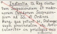 Instantia 13. Reg. civitatum Scepusiensium et modernorum Oppidorum Scepusiensium ad SS. et Ordines Hung. qua petunt se, Statumque suum provincialem etc. Articulariter in privilegiis suis confirmari ac ad quartum statum collective cum voto recepi. 1790