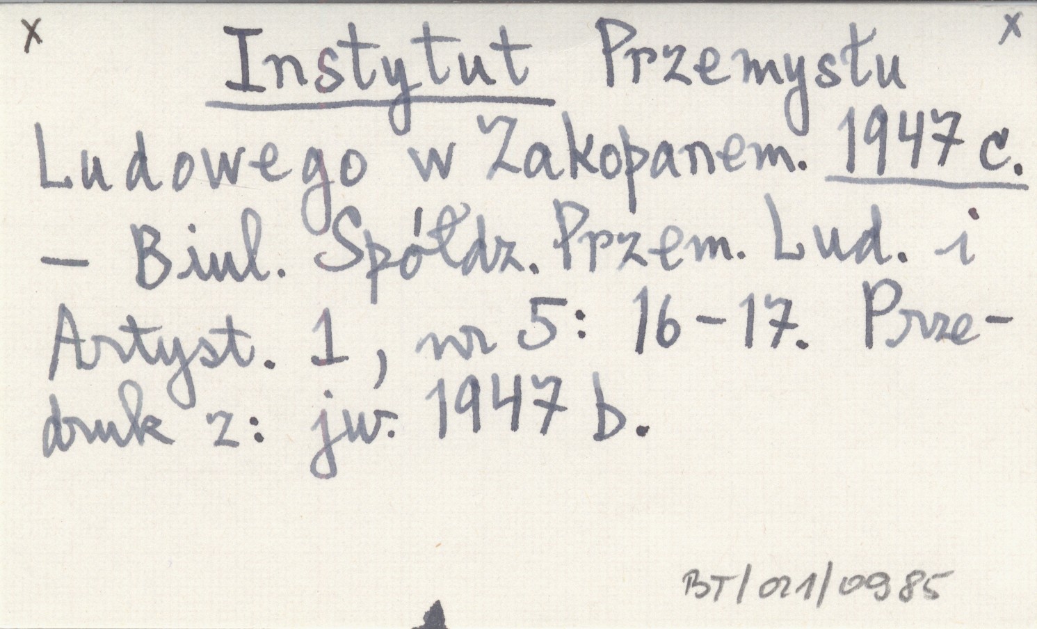 Biuletyn Spółdzielni Przemysłu Ludowego i Artystycznego, 1, nr 5: 16-17. Przedruk z: jw. 1947 b.