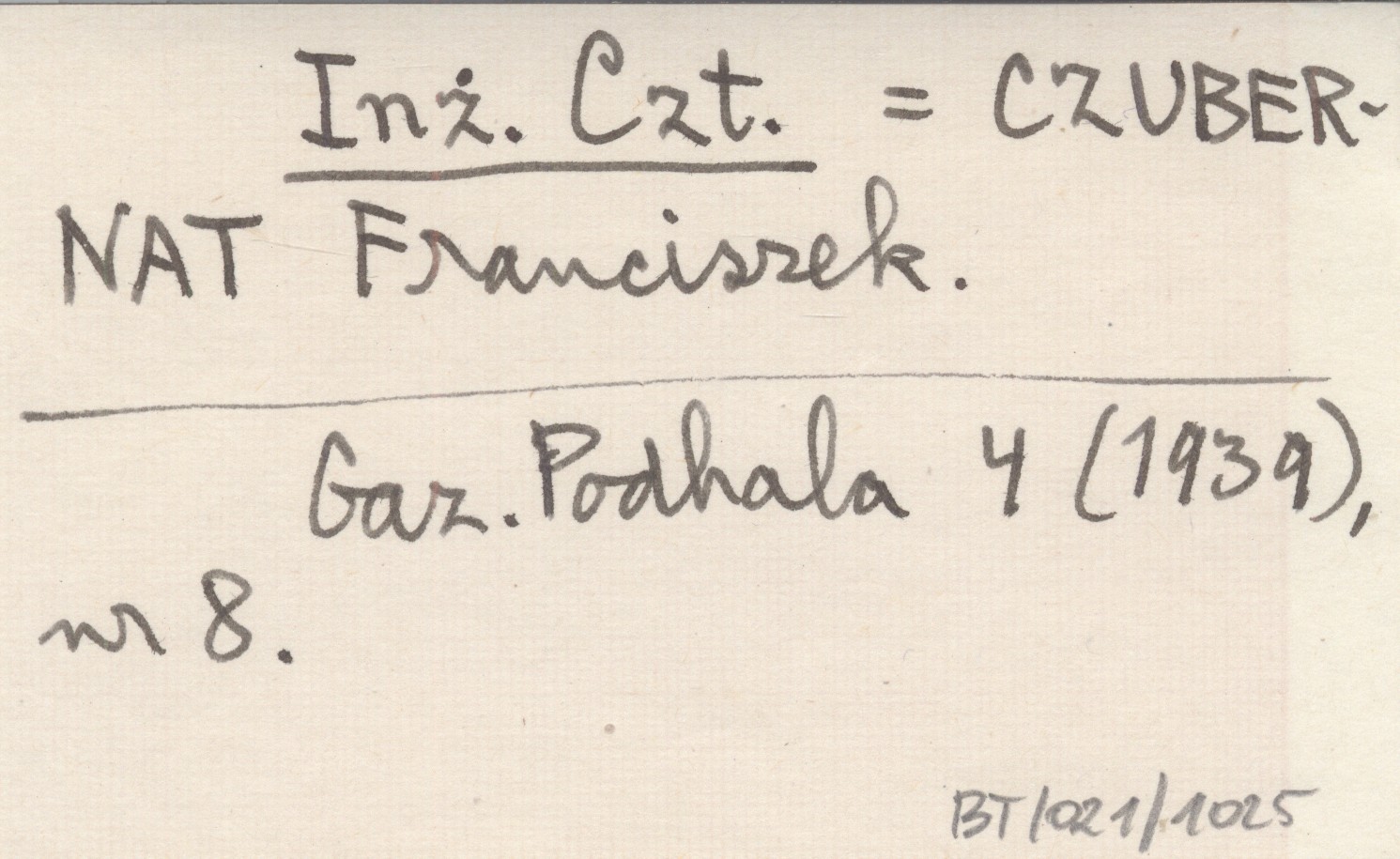 Inż. Czt. CZUBERNAT Franciszek Gazeta Podhalańska 4 (1939), nr 8.