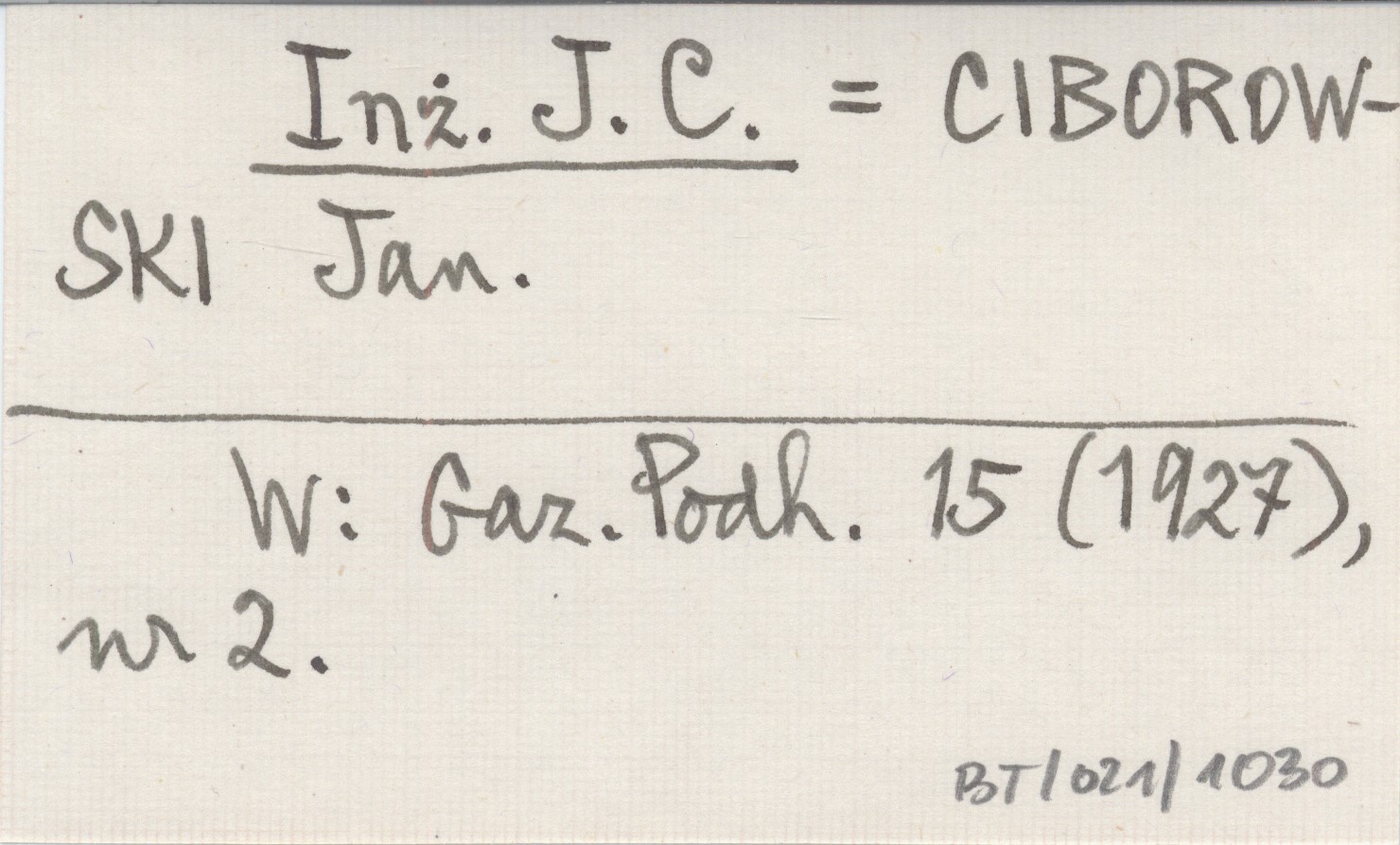 Inż. J.C. CIBOROWSKI Jan Gazeta Podhalańska 15 (1927), nr 2.