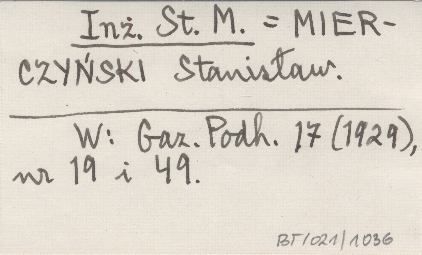 Inż. St. M. MIERCZYŃSKI Stanisław Gazeta Podhalańska 17 (1929), nr 19, 49.