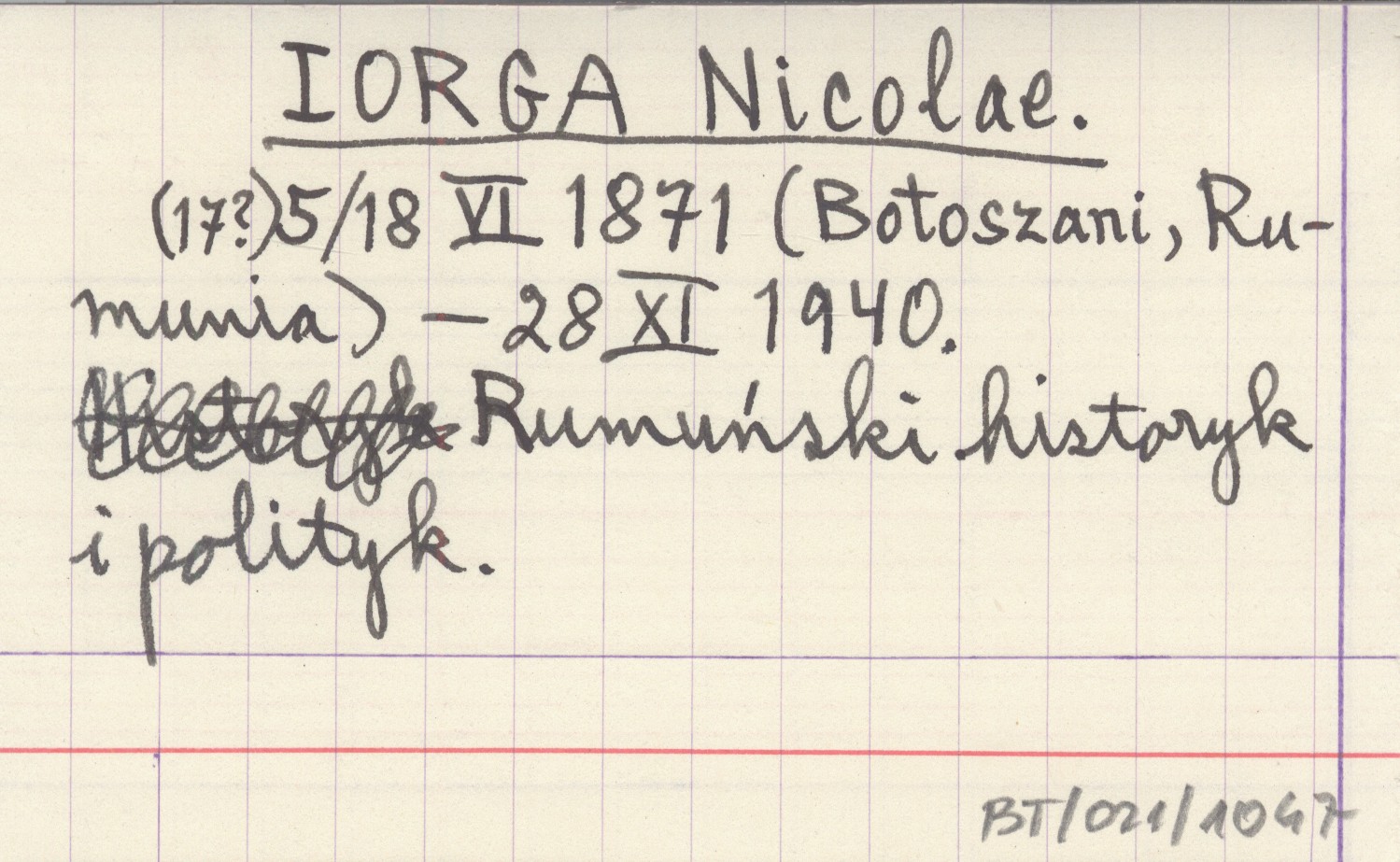 (17?) 5/18 VI 1871 (Botoszani, Rumunia) - 28 XI 1940. Rumuński historyk i polityk.