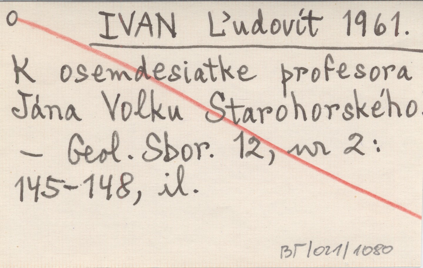 IVAN Ľudovít 1961 K osemdesiatke profesora Jána Volku Starohorského.