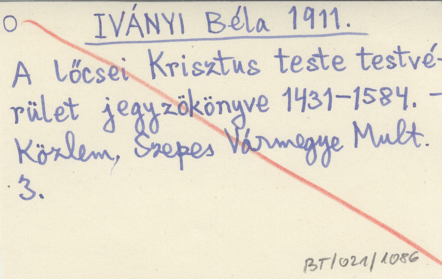 IVÁNYI Béla 1911 A lőcsei Krisztus teste testvérület jegyzökönyve 1431-1584.