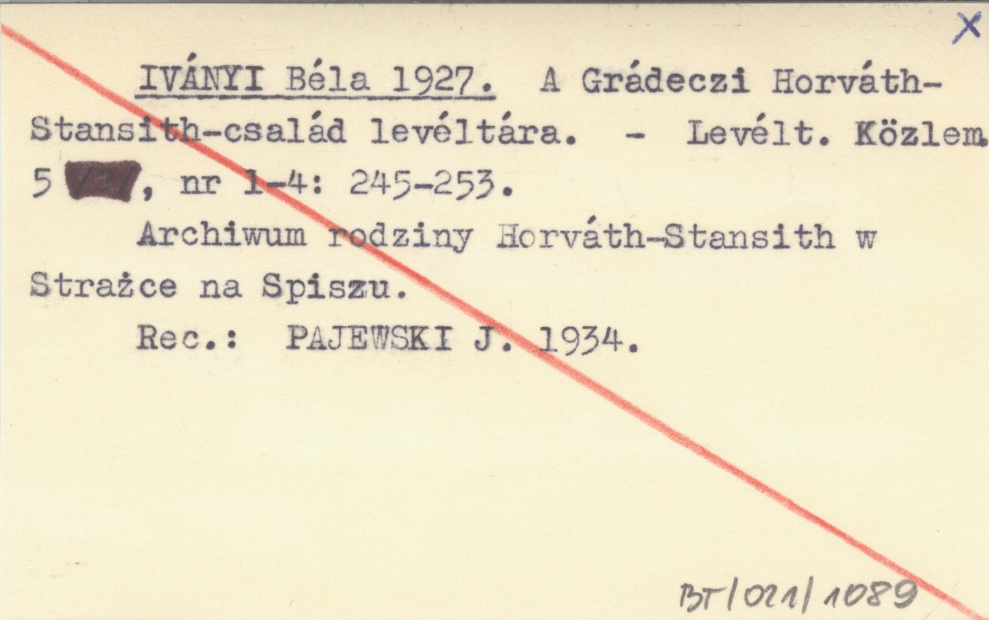 Levéltári Közlemények, 5, nr 1-4: 245-253. Archiwum rodziny Horváth-Stansith w Strażce na Spiszu. REC: PAJEWSKI J. 1934.