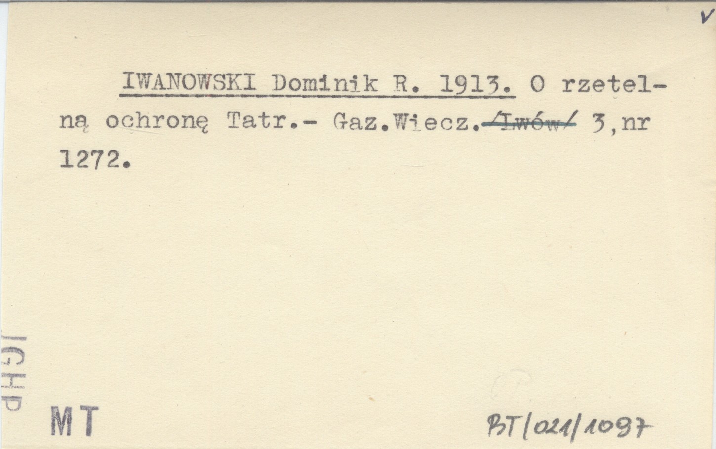 IWANOWSKI Dominik R. 1913 O rzetelną ochronę Tatr.