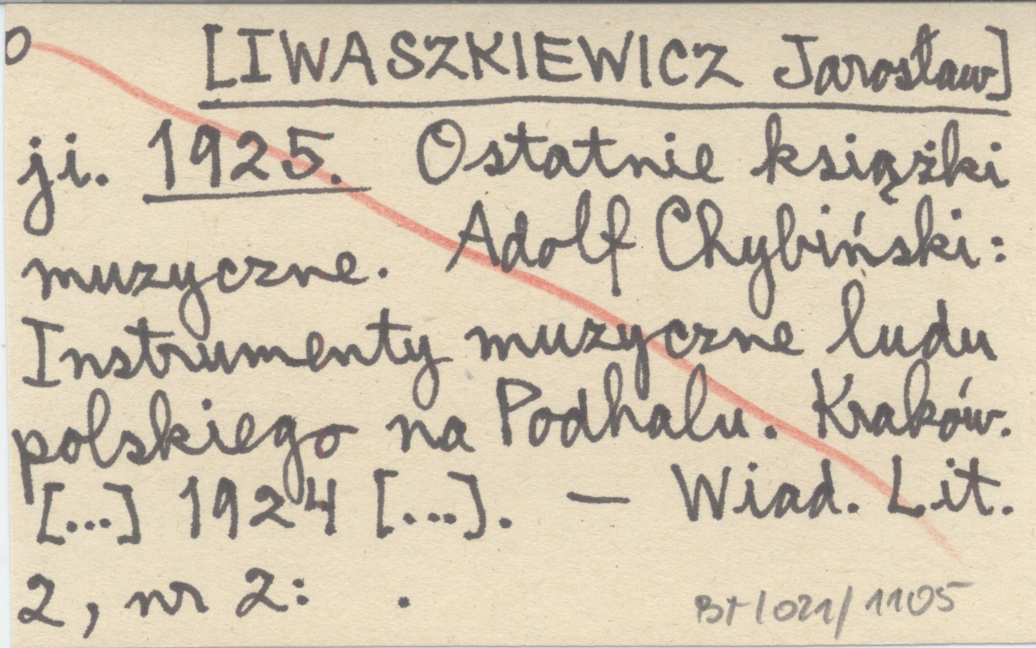 ji. [IWASZKIEWICZ Jarosław] 1925 Ostatnie książki muzyczne. Adolf Chybiński: Instrumenty muzyczne ludu polskiego na Podhalu. Kraków. [...] 1924 [...].