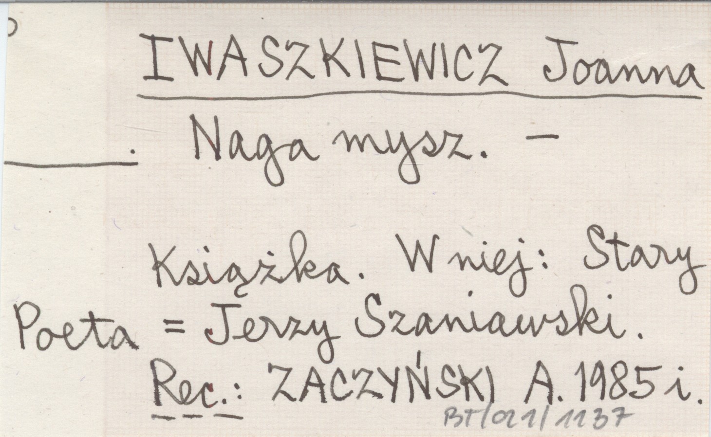 , Książka. W niej: Stary Poeta = Jerzy Szaniawski. REC: ZACZYŃSKI A. 1985 i.