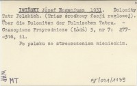 1931 IWIŃSKI Józef Eugenjusz Dolomity Tatr Polskich. (Trias ¶rodkowy facji reglowej). Über die Dolomiten der Polnischen Tatra.