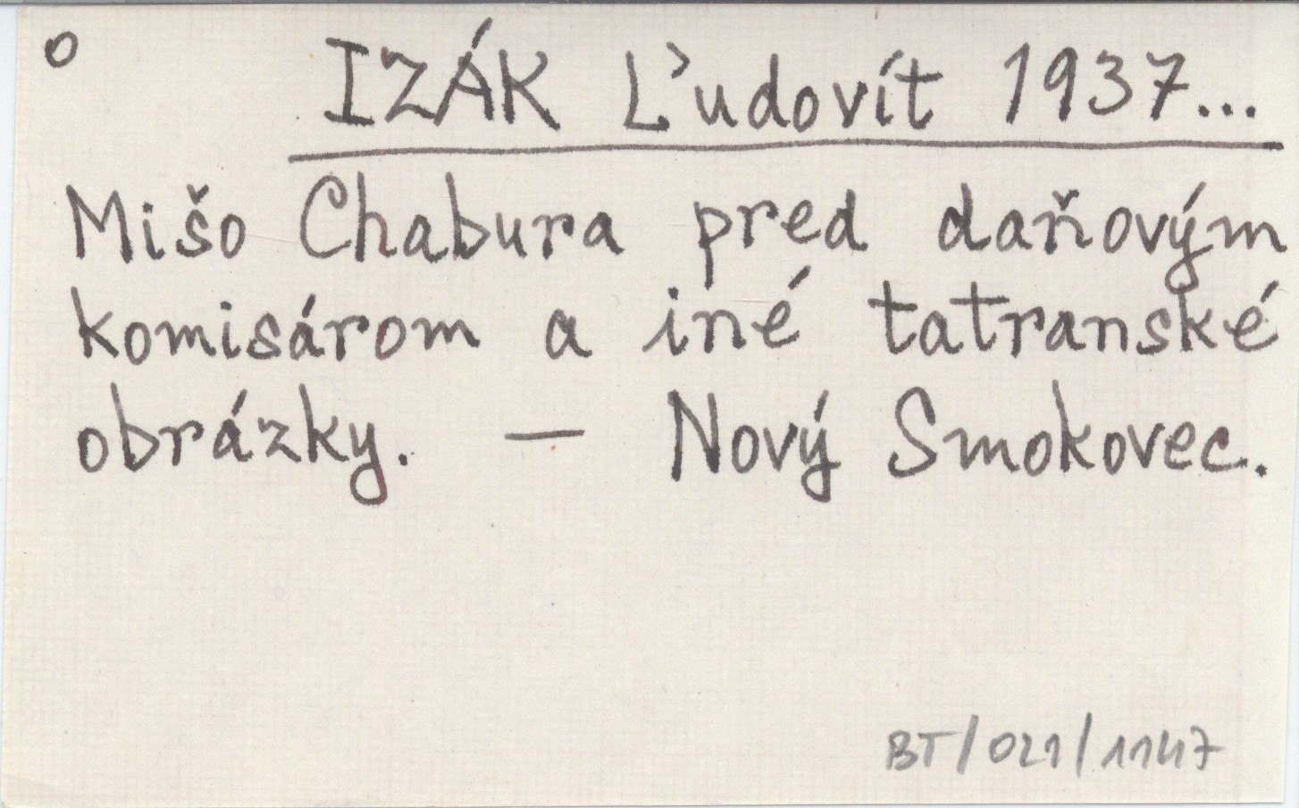 IZÁK Ľudovít 1937... Mišo Chabura pred daňcovým komisárom a iné tatranské obrázky.