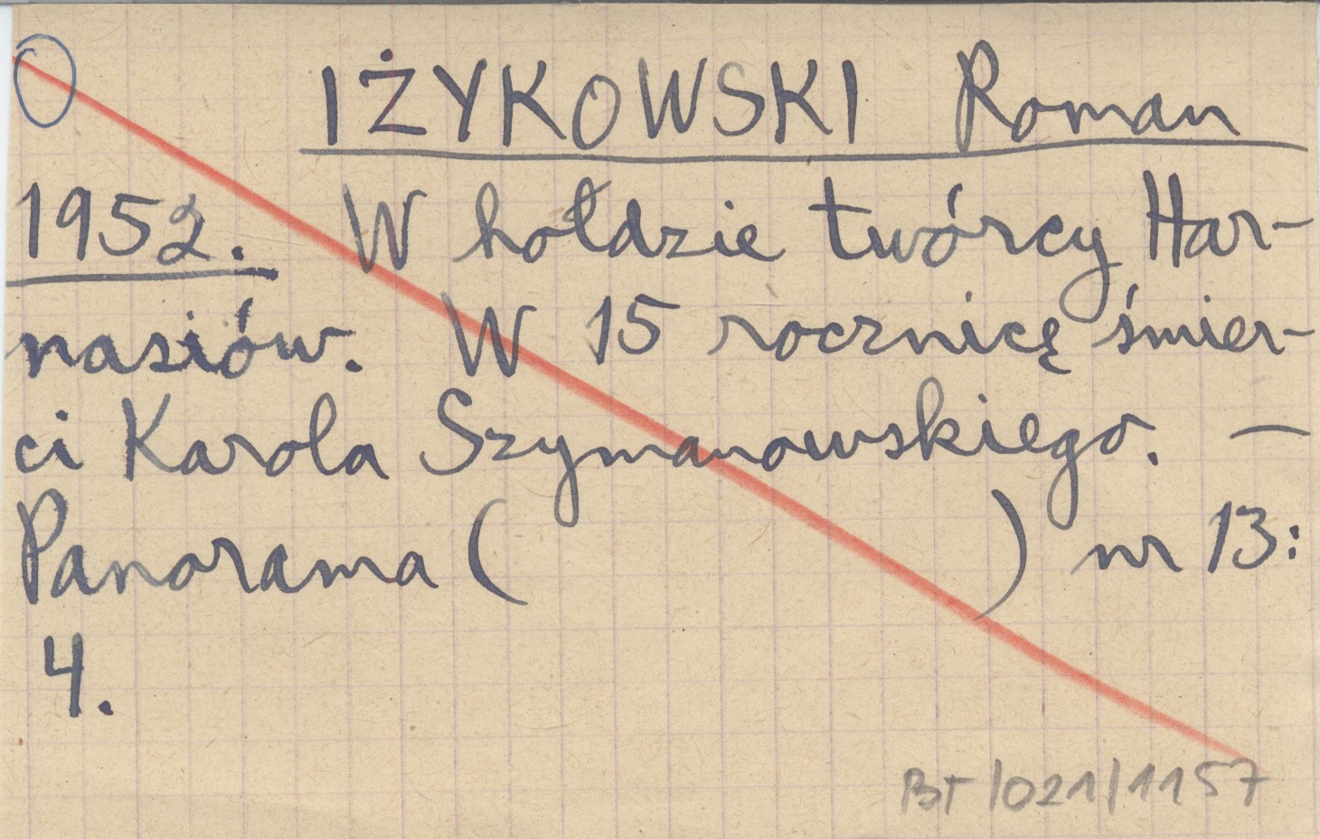IŻYKOWSKI Roman 1952 W hołdzie twórcy Harnasiów. W 15 rocznicę śmierci Karola Szymanowskiego.