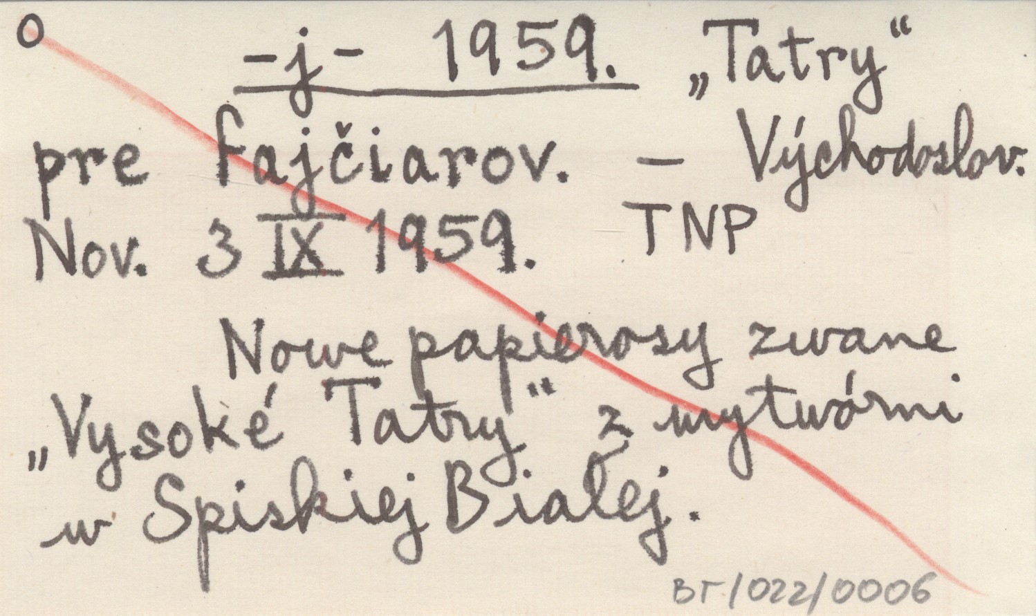 Východoslovenské Noviny, 3 XI 1959. Nowe papierosy zwane "Vysoké Tatry" z wytwórni w Spiskiej Białej.