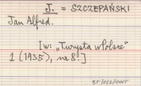J. SZCZEPAŃSKI Jan Alfred [W: "Turysta w Polsce" 1 (1935), nr 8].