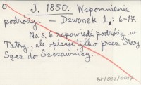 J. 1850 Wspomnienie podróży.