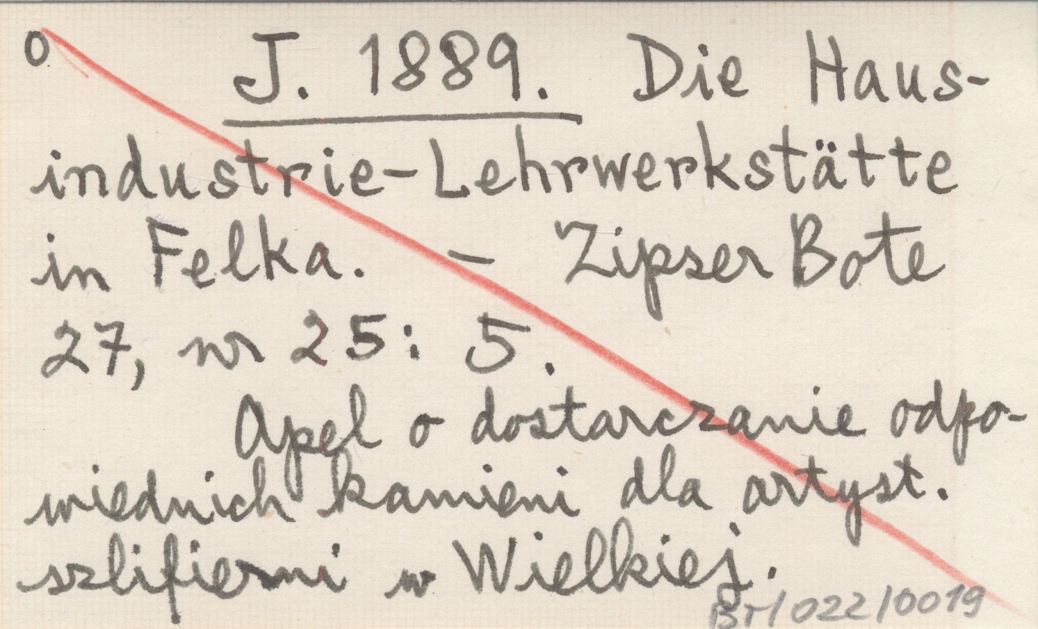 J. 1889 Die Hausindustrie-Lehrwerkstätte in Felka.