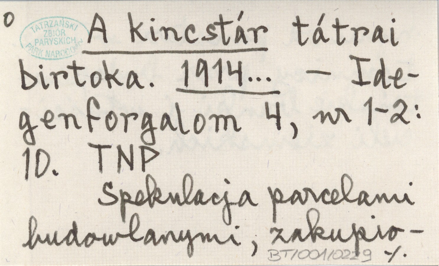 Idegenforgalom, 4, nr 1-2: 10. Spekulacja parcelami budowlanymi, zakupionymi od państwa w Tatrz. Łomnicy przez budapesztańskie banki i właścicieli ziemskich.