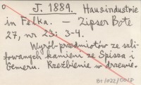 J. 1889 Die Hausindustrie-Lehrwerkstätte in Felka.