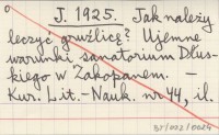 J. 1925 Jak należy leczyć gruźlicę? Ujemne warunki sanatorium Dłuskiego w Zakopanem.