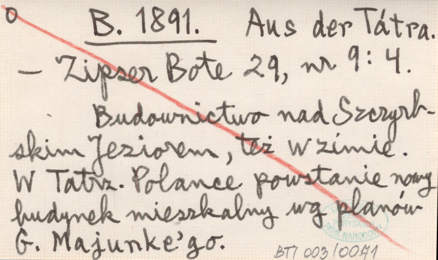 Zipser Bote, 29, nr 9: 4. Budownictwo nad Szczyrbskim Jeziorem, też w zimie. W Tatrz. Polance powstanie nowy budynek mieszkalny wg planów G. Majunke'go.
