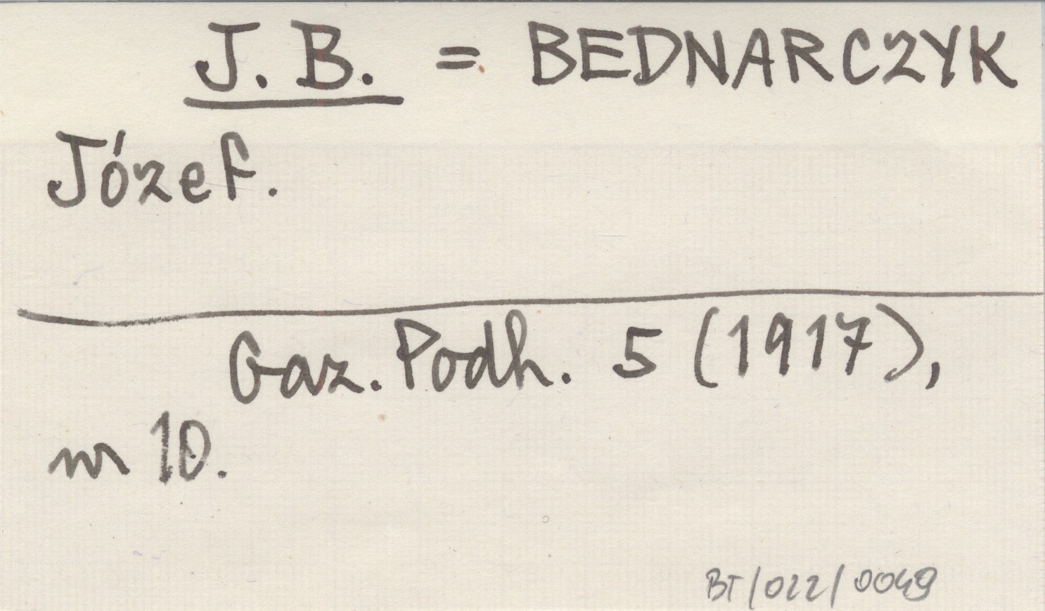 J. B. BEDNARCZYK Józef Gazeta Podhalańska 5 (1917), nr 10.