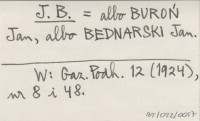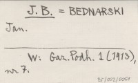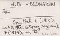J. B. BEDNARSKI Jan Gazeta Podhalańska 6 (1918), nr 40; 7 (1919), nr 13. Nr 40: nie dotyczy regionu.