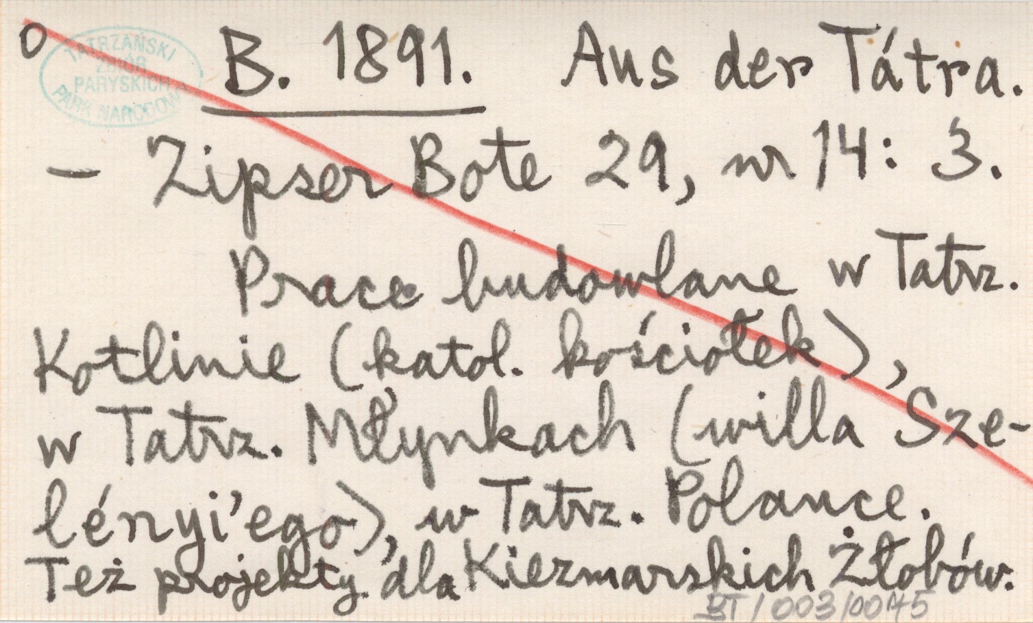Zipser Bote, 29, nr 14: 3. Prace budowlane w Tatrz. Kotlinie (katol. kościółek), w Tatrz. Młynkach (willa Szelényi'ego), w Tatrz. Polance. Też projekt dla Kiezmarskich Żłobów.