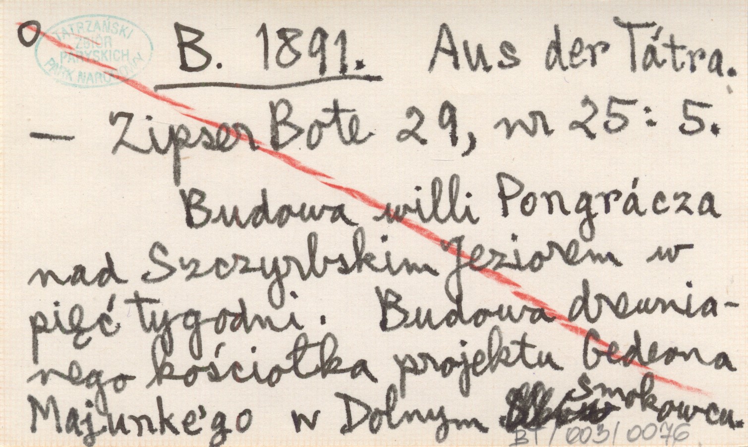 Zipser Bote, 29, nr 25: 5. Budowa willi Pongrácza nad Szczyrbskim Jeziorem w pięć tygodni. Budowa drewnianego kościółka projektu Gedeona Majunke'go w Dolnym Smokowcu.