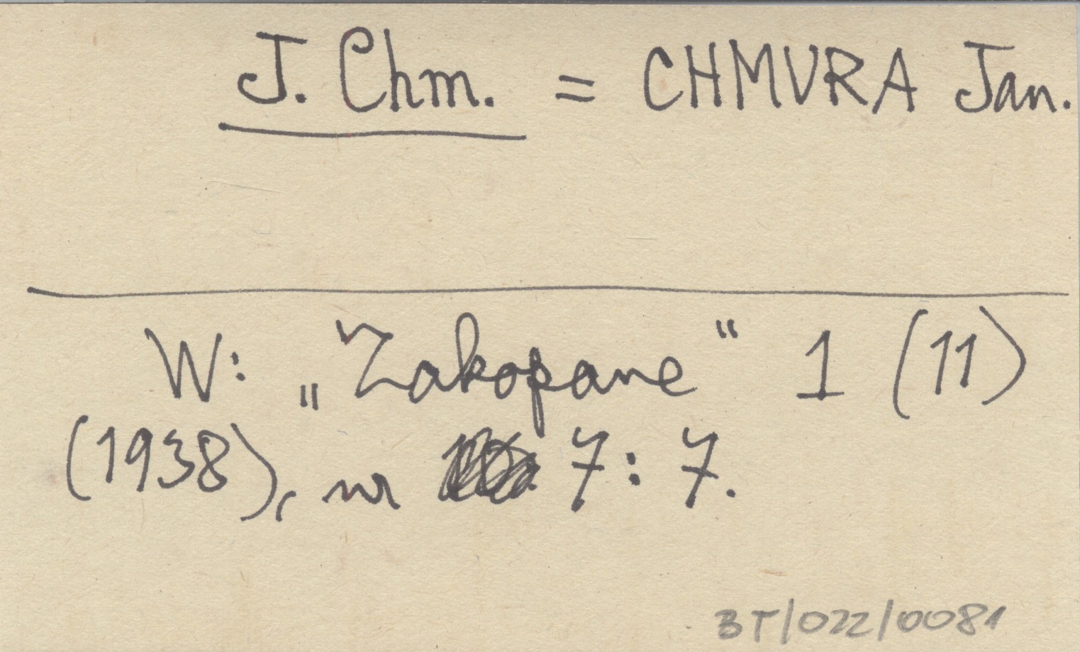 J. Chm. CHMURA Jan Zakopane 1 (11) (1938), nr 7: 7.