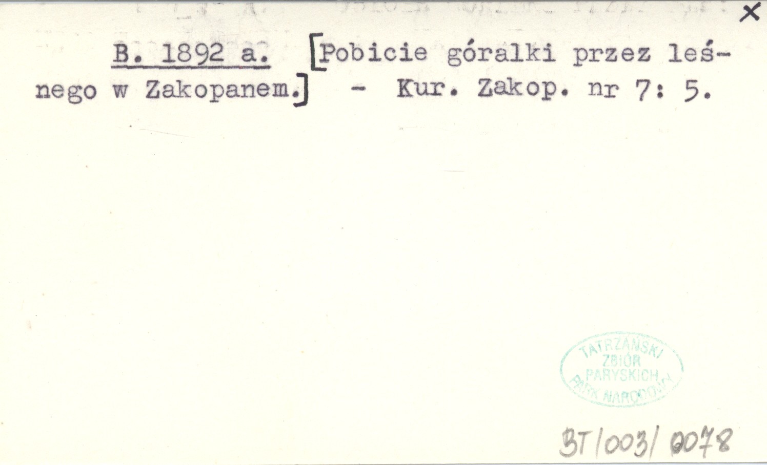 B. 1892 a [Pobicie góralki przez leśnego w Zakopanem.]