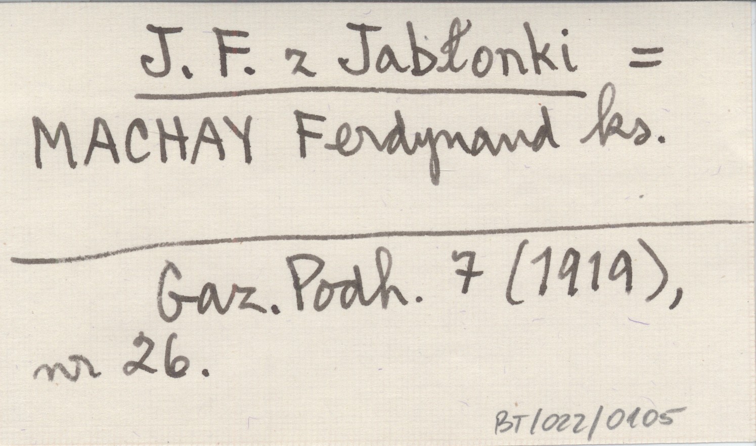 J. F. z Jabłonki MACHAY Ferdynand ks. Gazeta Podhalańska 7 (1919), nr 26.